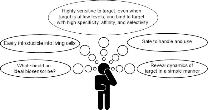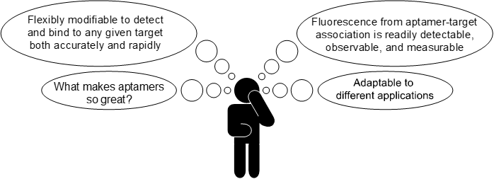 As you can see, aptamers have many advantages. But the most important advantage of aptamers is that they can be used to build a biosensor. I aim to build my biosensor in the form of an aptamer beacon. The schematic below shows how this will work.