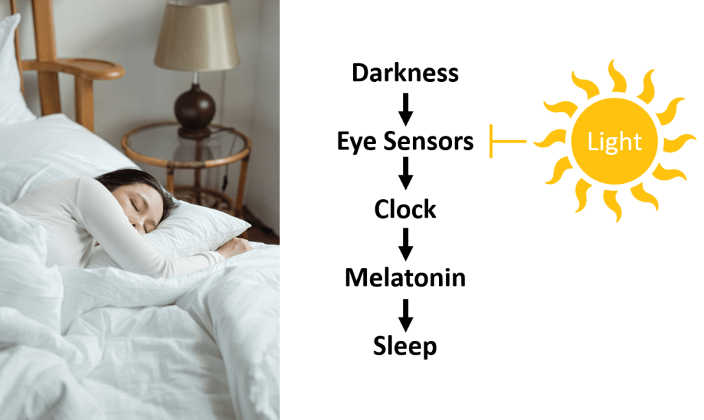 - Re-create sunset before sleep, like a dim limp. Your body needs ~30 minutes to create melatonin.