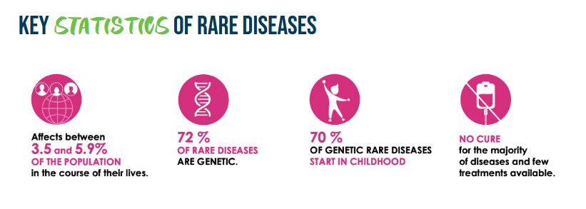 The impact of having a rare disease on an individual and their family cannot be understated. A survey by EURODIS, the European rare disease network, identified that 77% of patients and carers reported difficulties completing basic daily tasks (cooking, household chores), and that 2 in 3 patients and carers spent more than two hours a day on disease-related tasks (medication, therapy).