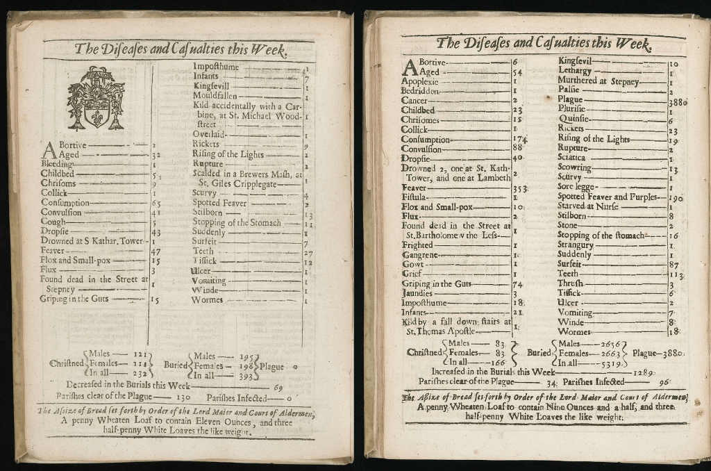 “When I was a teenager, I first encountered the Bills of Mortality. These were records of causes of death in London, published weekly for over two hundred years from the late 16th century. The Bills show that people died for very different reasons in the past, with infectious disease being very common, and heart failure, dementia and cancer seemingly almost unknown.