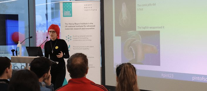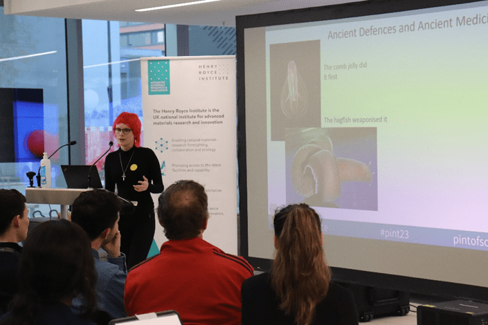 Organising the launch event taught us how to work with several stakeholders (Pint of Science, Henry Royce Institute etc.), gave us a taste of taking a science communication project from conception through to delivery and involved a lot of thinking on our feet as the night developed. We worked with the Royce Outreach team and with our own Pint of Science team to organise everything that was needed to make this event a success including speakers, promotion, hosting, a ticket competition, ticket sales and sponsorship. There were also aspects that we hadn’t encountered before with the main festival such as catering, media services, photography consent as well as the complexity of holding an event in an active research building. Luckily Alice La Porta from the Royce was particularly experienced and was a huge help in organising the event, thanks Alice!