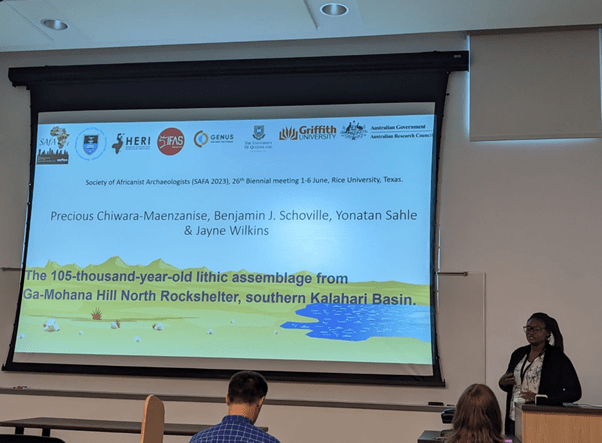 About the Author: Precious Chiwara, also known as Precious Chiwara-Maenzanise, is a GENUS Postdoctoral Fellow at the Human Evolution Research Institute (HERI) and the Department of Geological Sciences at the University of Cape Town. In 2021, she received the HERI #Advancing Woman Grant for Black women in palaeosciences, as well as the GENUS and IFAS PhD grants, which supported her doctoral research at the University of Cape Town’s Archaeology Department. Her postdoctoral research has been funded by GENUS, IFAS, and the Palaeontological Scientific Trust (PAST). Both her PhD and postdoctoral work focus on understanding Middle Stone Age (MSA) human adaptation in the Kalahari Basin. She is part of a team highlighting the early record of human evolution beyond coastal regions, where most research has traditionally been concentrated. Precious states, “Black women are underrepresented in palaeosciences; thus, my goal is to advance the representation of women in this field.”